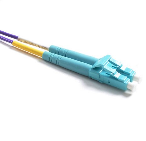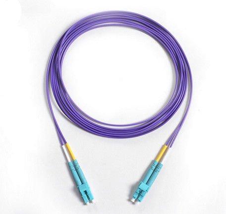 Chinese supplier of fiber optic jumper,LC/UPC to LC/UPC OM4 Purple Duplex 3.0mm 8Mtrs LSZH